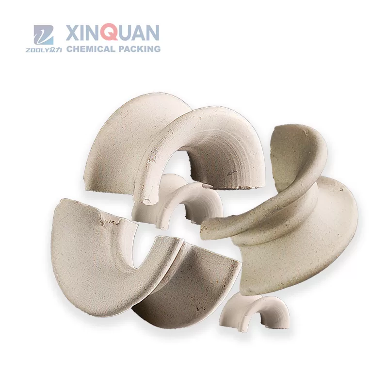 Ceramic Intalox Saddle with excellent acid resistance and heat resistance. They can resist to corrosion of various inorganic acids, organic acids and organic solvents except hydrofluoric acid, and can be used in high or low temperature conditions. Consequently their application ranges are very wide.Ceramic Intalox Saddle can be used in the drying columns, absorbing columns, cooling towers, scrubbing towers in chemical industry, metallurgy industry, coal gas industry, oxygen producing industry, etc. Ceramic Saddles are used in two main fields but have different properties depending on the application. One field is the chemical and petrochemical industries and another is in environmental areas such as RTO equipment.