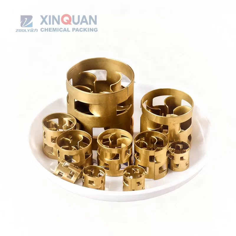Copper Pall Ring packing Characteristics of metal Pall ring packing has the characteristics of low pressure drop, large flux and high efficiency. It has lower pressure drop and higher quality efficiency, and the liquid distribution in the packing layer is good. The application of metal Pall ring is applicable to various separation, absorption and desorption devices, atmospheric and vacuum devices, decarburization and desulfurization systems of synthetic ammonia, ethylbenzene separation, isooctane/ methylbenzene separation, etc.