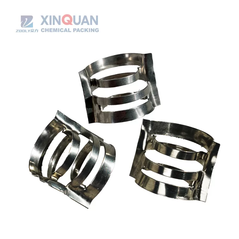 Metal Conjugated Ring random tower packing is of big liquid flow, low pressure drop and high efficiency. This packing takes the advantages of raschig ring and intalox saddle. It has proper flanging and diameter ratio. point contact isused between rings and tower wall.it has better mass transfer property. This packing widely used in packed tower of alkali-chloride industry, petroleum industry, coal gas industry, chemical industry and environment industry,etc.