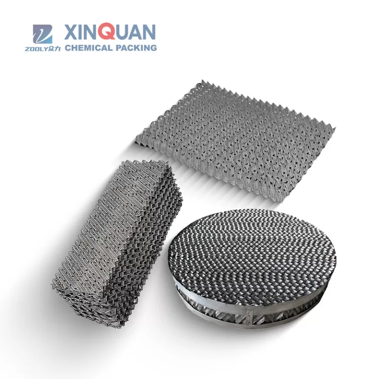In 1977, the Switzerland company Sulzer, introduced the Mellapak sheet metal corrugated packing. Metal corrugated plate packing is an important milestone in the development of structured packing. The packing is made up of corrugated mesh sheets. The corrugated sheets are inclined at 30° or 45°. The adjacent corrugated sheets are opposite in direction and filled in the tower. When loading, the upper and lower plates are stacked at 90°. It has the advantages of high efficiency, reduced pressure and large flux. The products are often used in vacuum rectification, atmospheric distillation and suction processes for difficult separation and heat sensitive systems.
