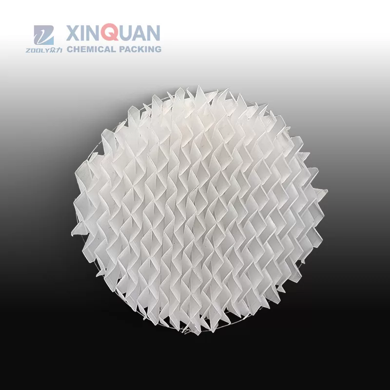 Compared with other packings, the quality of plastic structured packing is much lighter and cost-effective. The flux is relatively large, it is suitable for a larger tower, which can improve the output and reduce the energy consumption, greatly improve the production efficiency. The low price of plastic structured packing has been well received by consumers. Due to the special properties of the plastic structured packing material, it has high temperature resistance and corrosion resistance. It can be used in many harsh environments. We often apply it to various absorption and desorption unit operations, such as In the hydrochloric acid, sulfuric acid industry, natural gas industry, as well as environmentally friendly exhaust gas purification treatment and desorption and degassing devices, the ability to treat fluids and separation efficiency has been greatly improved.