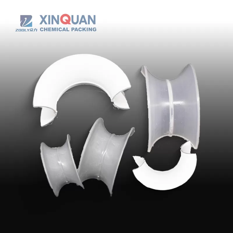 The Plastic Intalox Saddle is made from heat resistant and chemical corrosion resistant plastics, including polypropylene (PP),polyvinyl chloride (PVC), chloridized polyvinyl chloride (CPVC) and polyvinylidene fluoride (PVDF). It has features such as large void space, low pressure drop, low mass-transfer unit height, high flooding point, uniform gas-liquid contact, small specific gravity, high mass transfer efficiency and so on, and the application temperature in media ranges from 60to 280℃. For these reasons it is widely used in the packing towers in petroleum industry, chemical industry, alkali-Chloride industry, coal gas industry and environmental protection, etc.