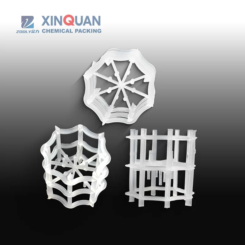 Plastic tower packing can be made from heat resistant and chemical corrosion resistant plastics, including polyethylene (PE), polypropylene (PP), reinforced polypropylene (RPP), polyvinyl chloride (PVC), chlorinated polyvinyl chloride (CPVC) ,polyvinyiidene fluoride (PVDF)and Polytetrafluoroethylene(PTFE) .The temperature in media ranges from 60 Degree C to 280 Degree C.