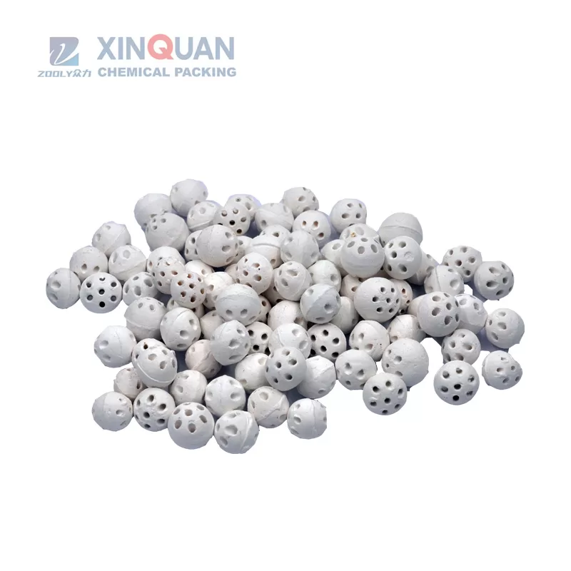 Porous ceramic balls is also called filtering balls. It is made by make 20-30% pores inside the inert ceramic balls. Therefore it can be used not only for supporting and covering the catalyst, but also for filtering and eliminating the impurities of grain, gelatin, asphalting, heavy metal and iron ions of less than 25um.